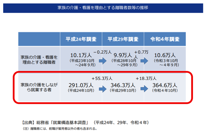 そして、以下の資料にもあるように、近年は介護をしながら就業する方が増えています。