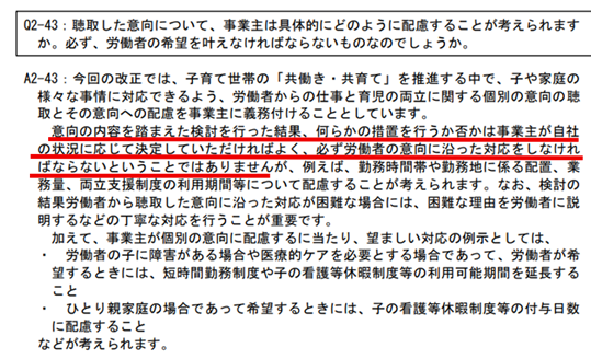 特に、意向配慮にあたっては個別具体的な事情を聞き取る必要があるので、事業主側にはより丁寧な対応が求められることになります。