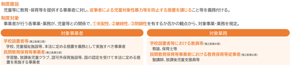 出典:こども家庭庁作成「こども性暴力防止法の施行に向けた検討状況について」P3より引用・抜粋し、加工して作成